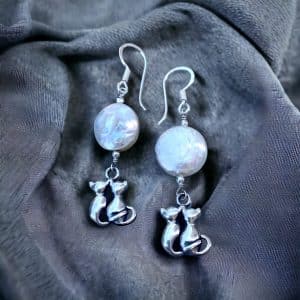 Aretes pareja de Gatos con Perla grande
