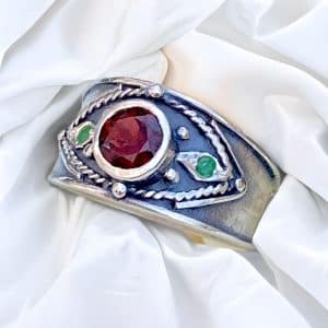 Anillo con Granate y Esmeralda en plata 925