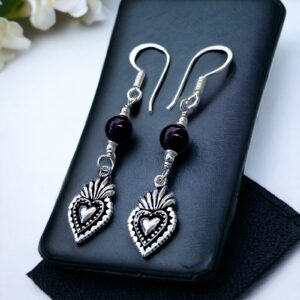 Aretes Sagrado Corazon con piedra natural en plata 925