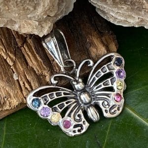 Dije Mariposa con Zafiros multicolor en plata 925!