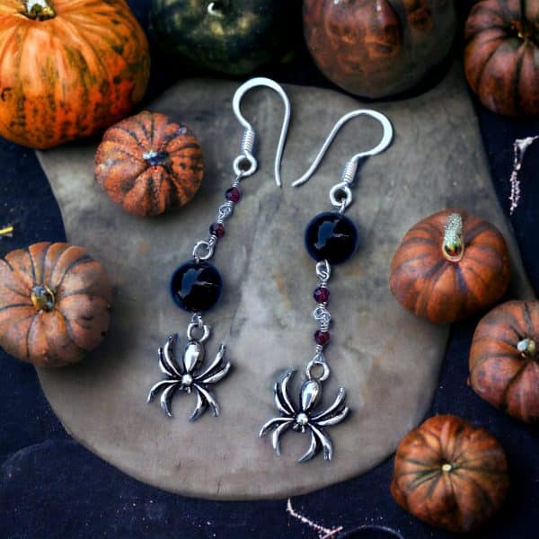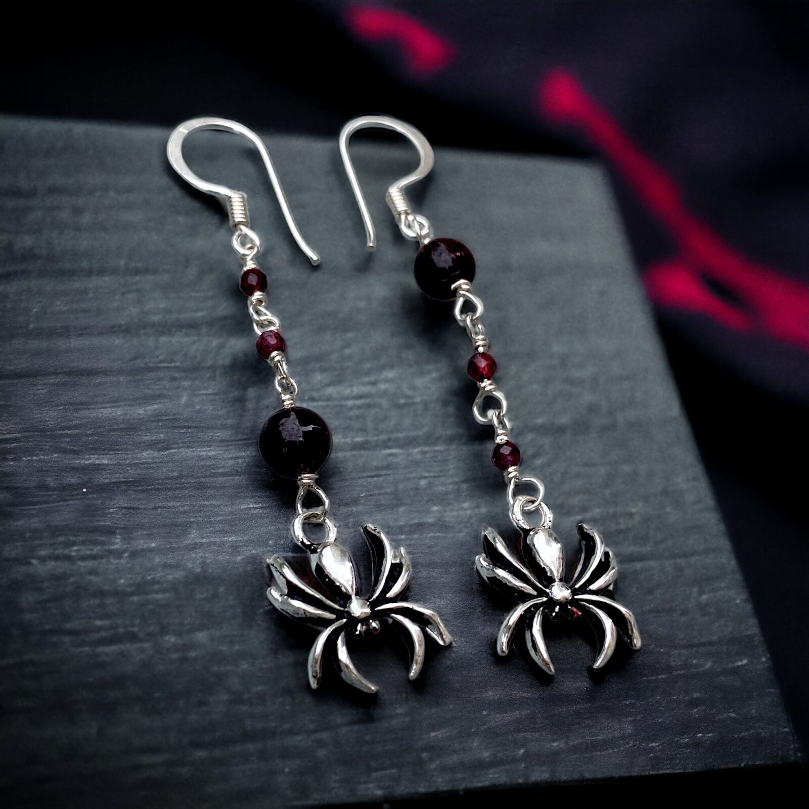 Aretes de Araña con Obsidiana y Granate en plata 925!