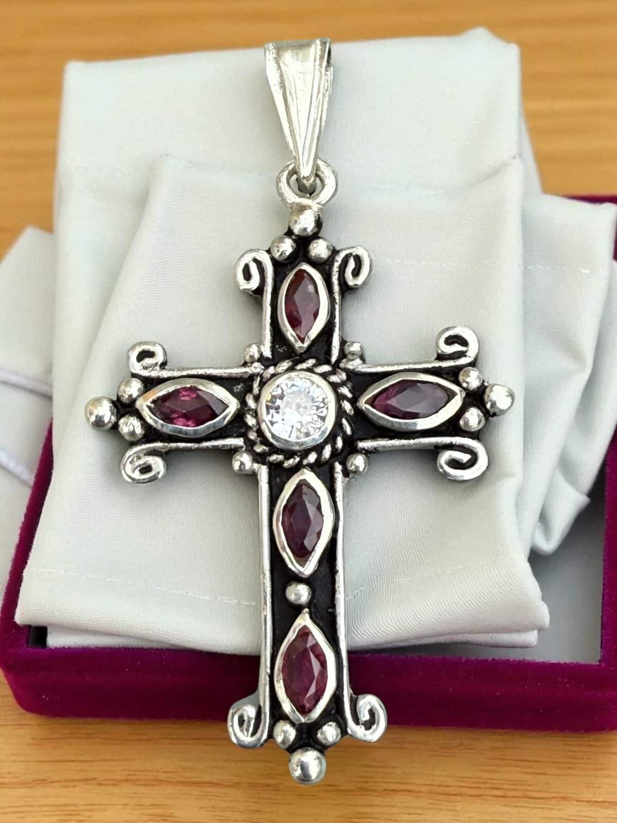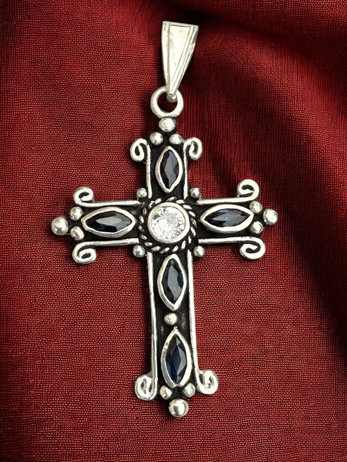 Dije Cruz con Zafiro natural en plata 925!